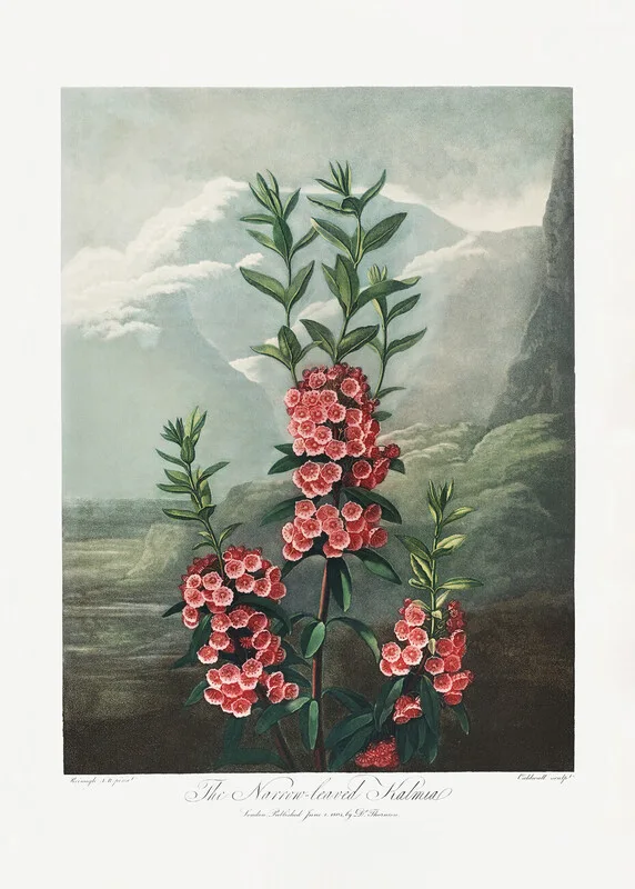 Plakát The Narrowa€“Leaved Kalmia from The Temple of Flora (1807)