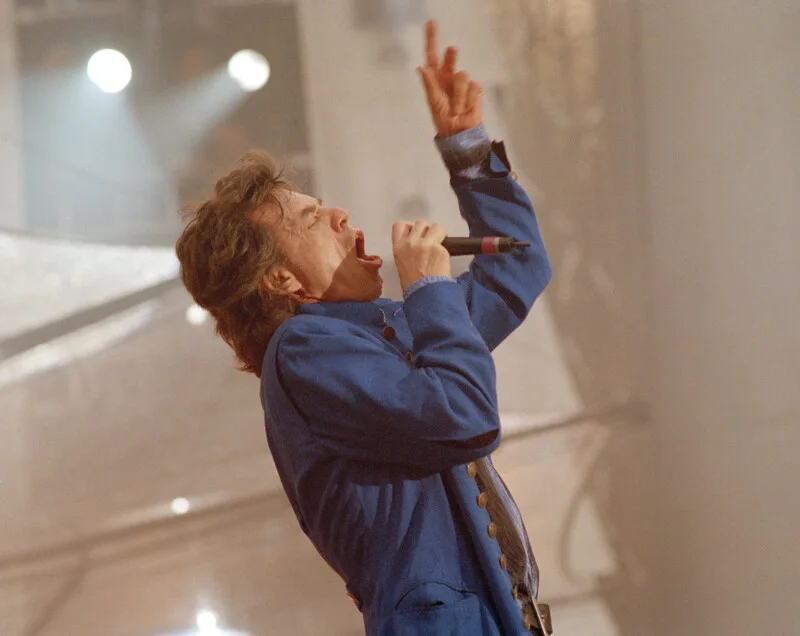 LONDON, ENGLAND - JULY 11: Mick Jagger of The Rolling Stones performing on stage at Wembley Stadium in London on the 11th July, 1995. (Photo by Jim Steele/Popperfoto via Getty Images/Getty Images)