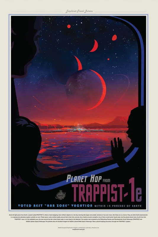 Samolepka Trappist 1E (Planet & Moon Poster) - Space Series (NASA)