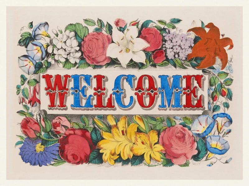 Obraz na plátně Welcome (Rustic Farmhouse Vintage Lithograph) - Retro Home Sign