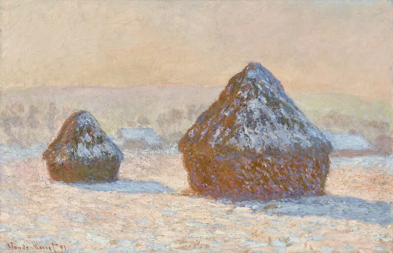 Obraz na plátně Wheatstacks, Snow Effect, Morning (1891)