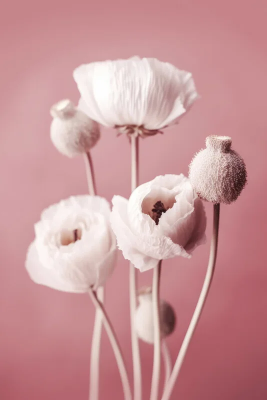 Obraz na plátně White Poppy On Pink Background