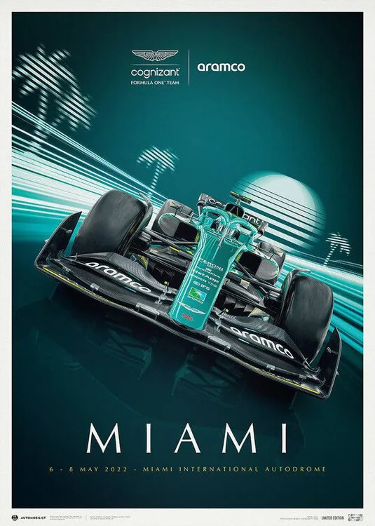 Umělecký tisk Aston Martin Aramco Cognizant Formula 1 Team - Miami - 2022 - Limited Edition