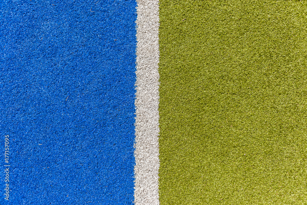 Fotografie Astro Turf Closeup Lines sports field boundary blue green white abstract closeup