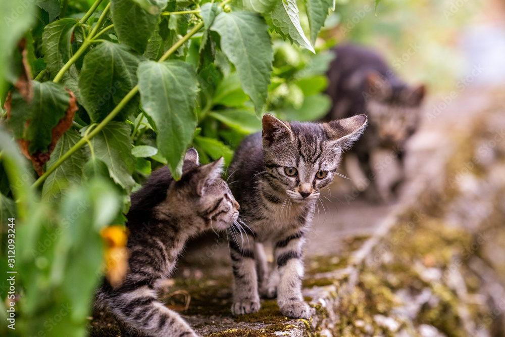 Fotografie baby cats under green plants