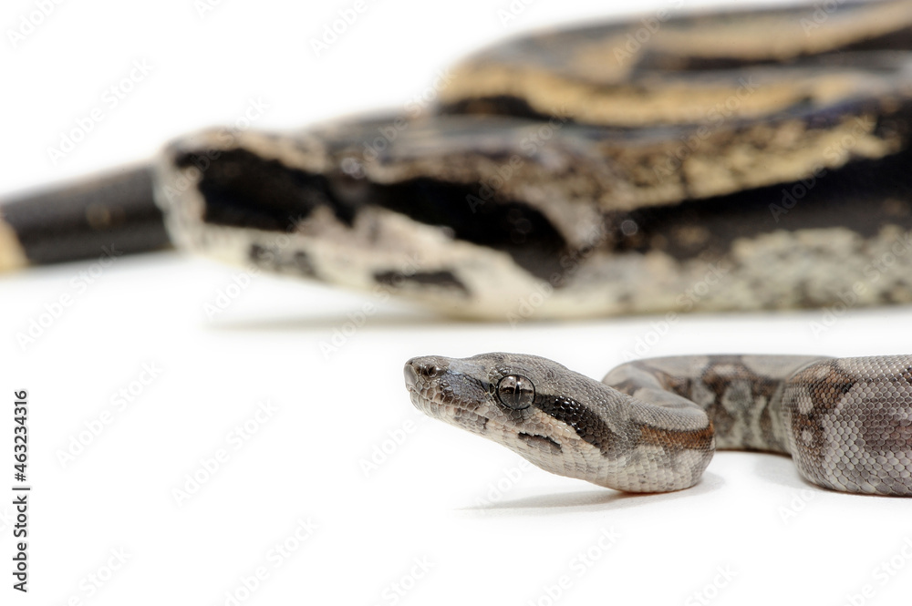 Fotografie Baby peruvian long-tailed boa (Boa constrictor longicauda) on a white background
