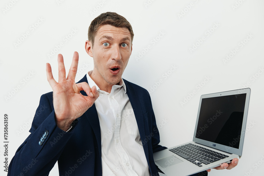 Fotografie Background man young office person computer adult man surprise business laptop b