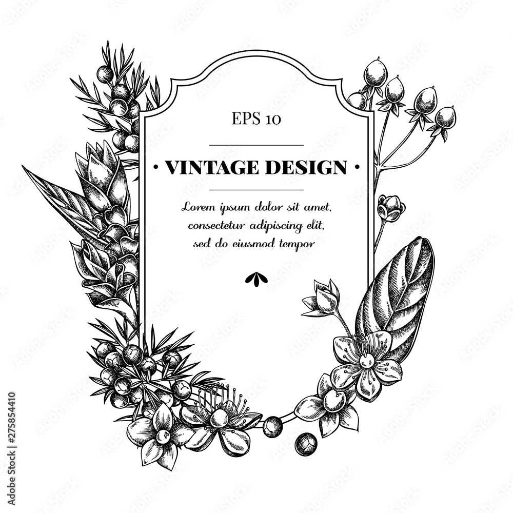 Obraz na plátně Badge design with black and white juniper, hypericum, turmeric