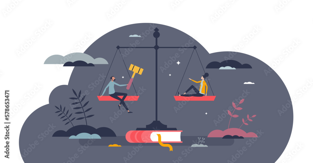 Obraz na plátně Balance of the law and freedom for ethical legal system tiny person concept, transparent background