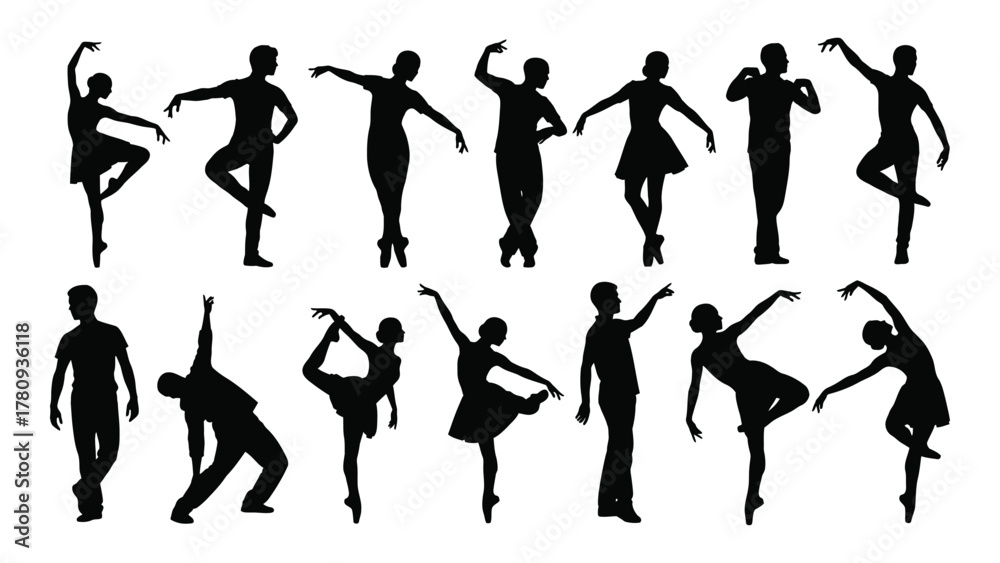 Fotografie Ballet dancers silhouettes collection isolated on transparent background, Vector