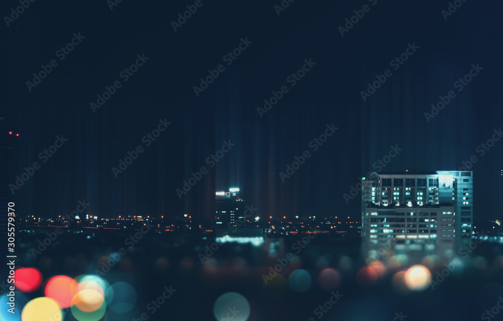 Obraz na plátně Bangkok night view with skyscraper in business district in Bangkok Thailand
