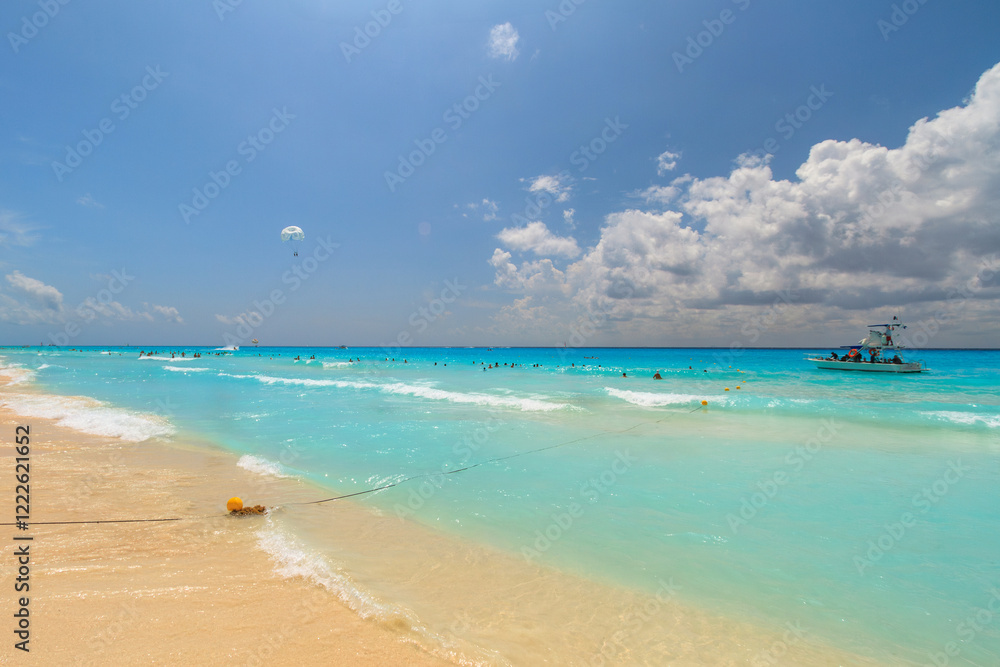Fotografie Beach at Caribbean sea in Playa del Carmen, Mexico