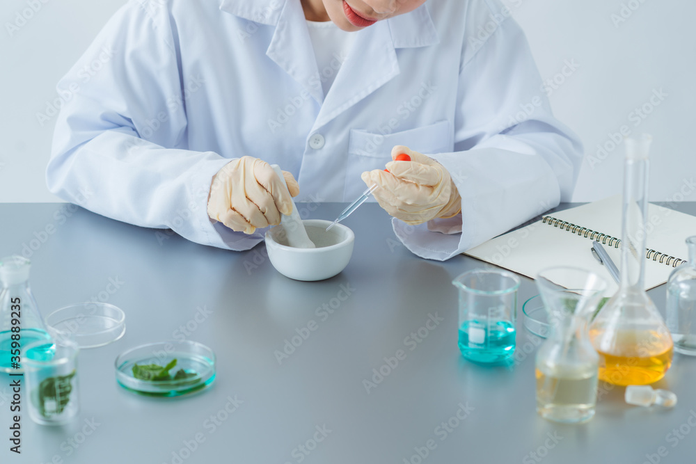 Fotografie Beautiful healthy woman preparing natural cosmetics