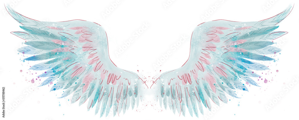 Obraz na plátně Beautiful magic blue pink watercolor angel wings