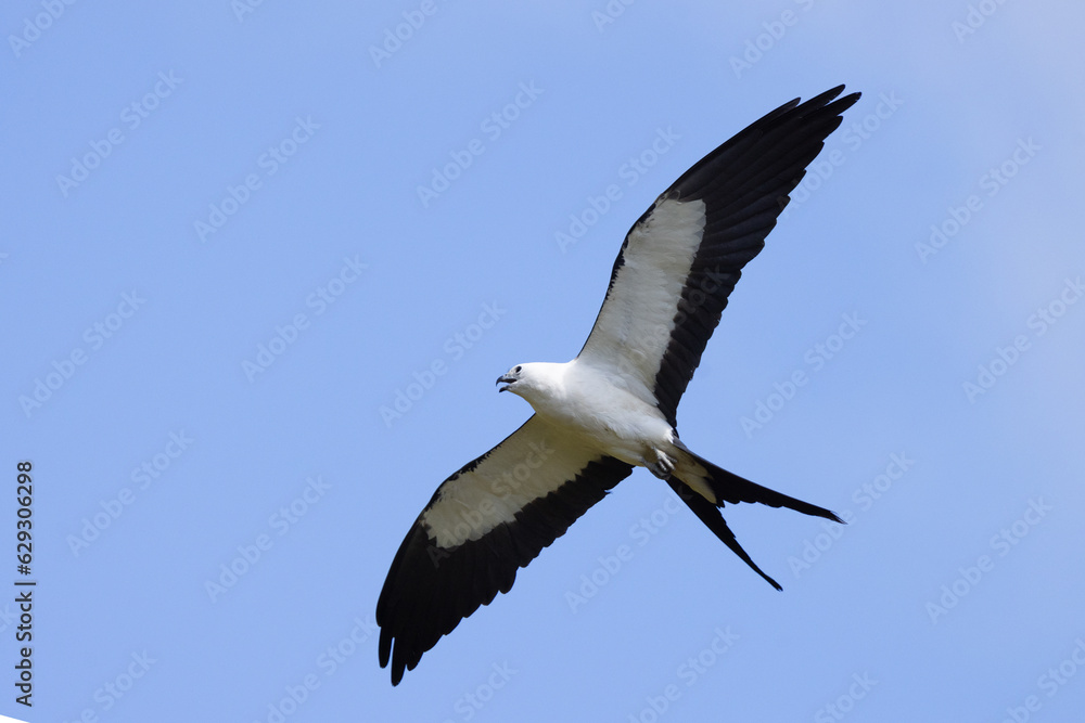 Fotografie Beautiful swallow-tailed kite (Elanoides forficatus), an agile bird, in flight o