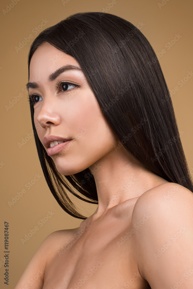 Fotografie Beautiful Woman With Perfect Skin and Long Hair Beauty Studio Portrait