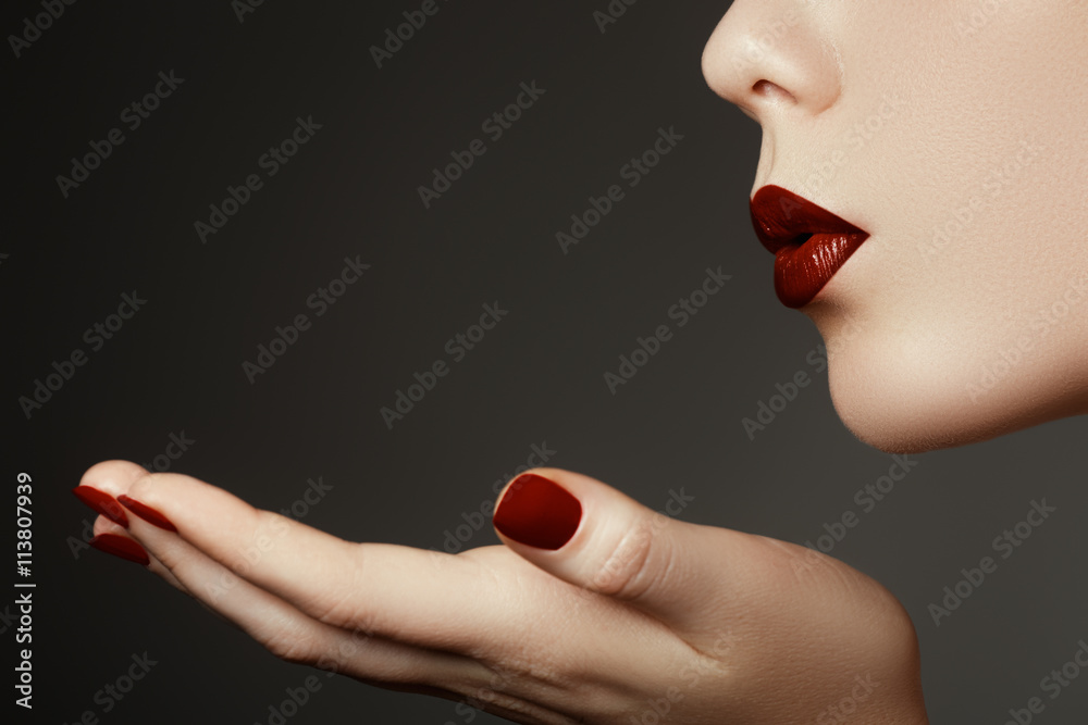 Fotografie Beautiful young woman blowing a kiss from her hand