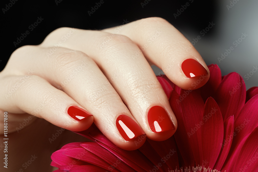 Fotografie Beauty delicate hands with manicure holding pink flower