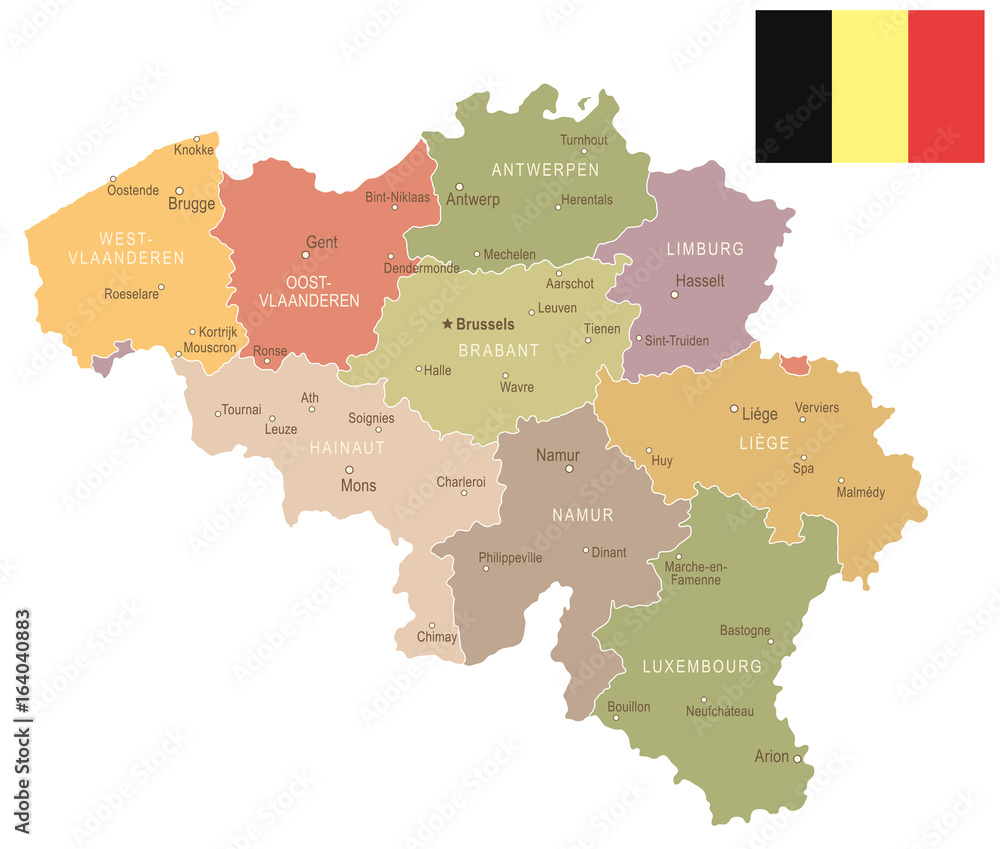 Fotografie Belgium - vintage map and flag - illustration