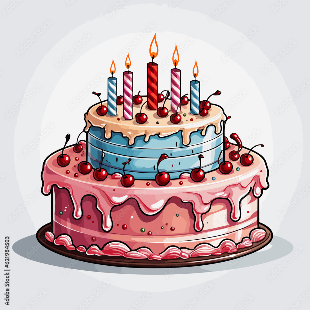 Fotografie Birthday cake hand-drawn comic illustration