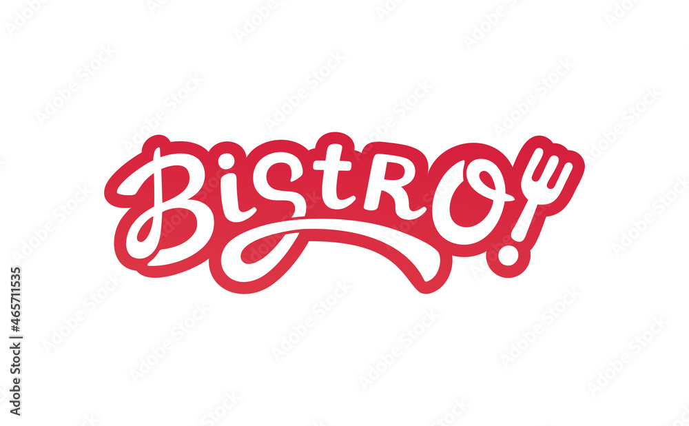 Obraz na plátně Bistro lettering with fork as logotyp, badge, label for restaurant or cafe