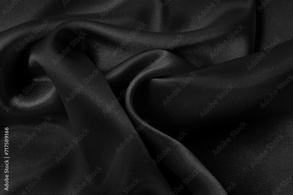 Fotografie Black fabric cloth texture for background and design art work, beautiful crumpled pattern of silk or linen