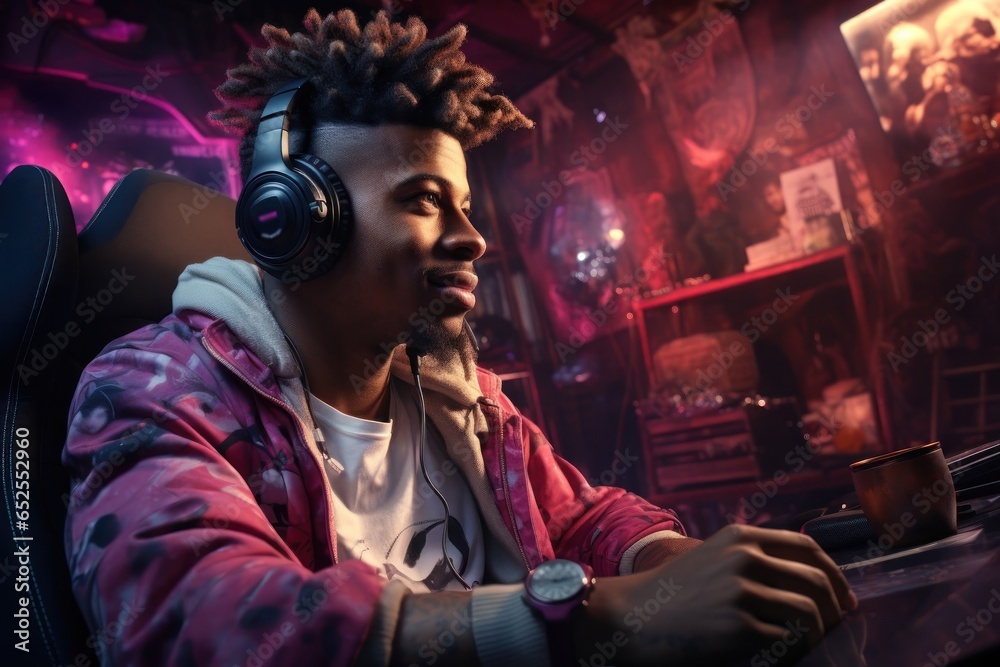 Fotografie Black Man Gamer Occupation Employment Workplace Backdrop Generative AI