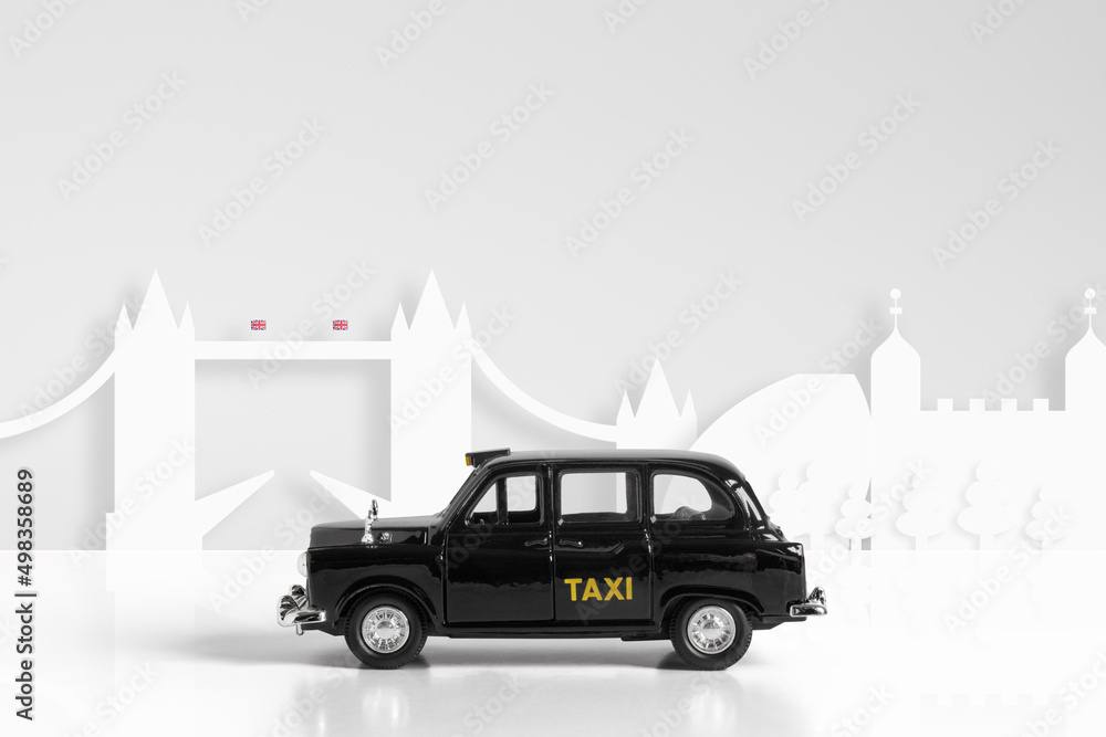Fotografie Black Model taxi & London skyline concept
