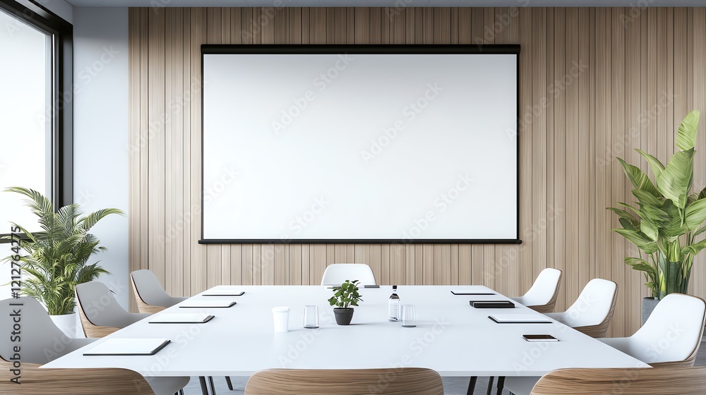 Fotografie Blank ad frames in natural settings Modern conference room with clean design