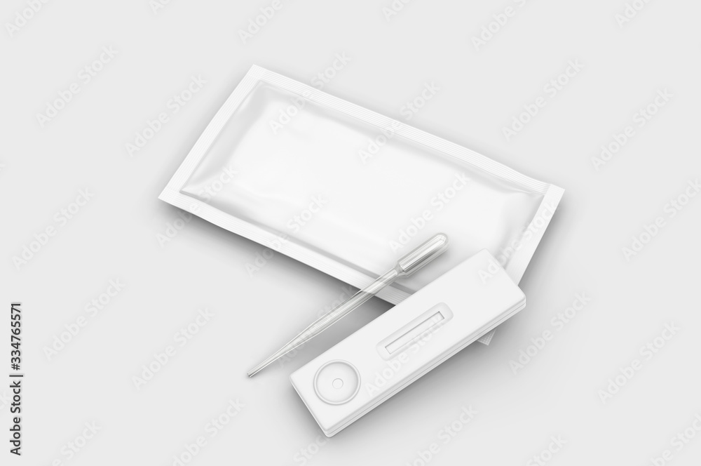 Fotografie Blank rapid home self test kit sachet packaging for branding, 3d render illustration
