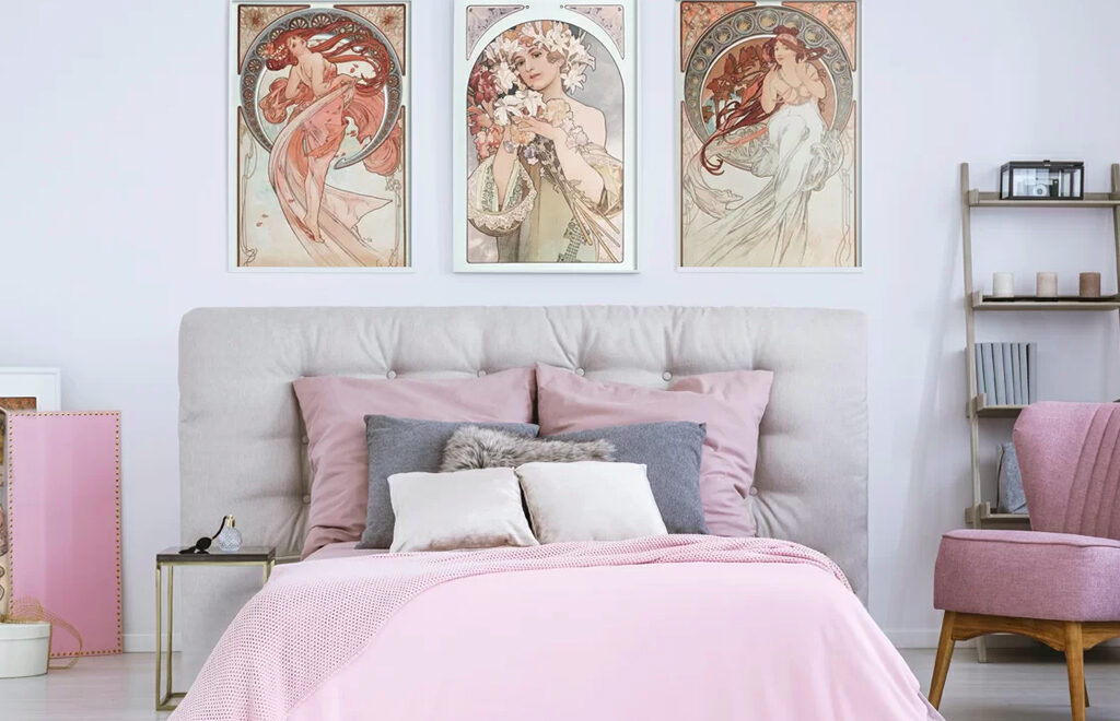 Jste milovníci tradičních děl? Vyzdobte si ložnici oblíbenými obrazovými reprodukcemi od světově známých umělců – Muchy, Gogha, Klimta a dalších.