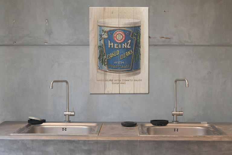 Dřevěné dekorace s nádechem vintage stylu se budu skvěle vyjímat ve Vaší kuchyni, z které udělají útulný a pohodlný prostor. Vyberte si z naší nabídky například retro Heinz fazole v plechovce, nebo vintage láhve s kečupem. Budete sami překvapeni, jak skvěle budou tyto obrázky na zdi vypadat!