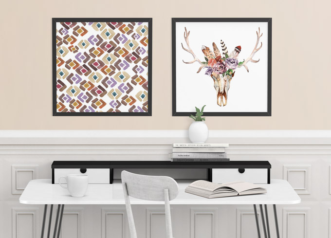 Abstraktní umělecké kousky či opakující se geometrické tvary jsou jedním ze způsobů jak vytvořit bohémský styl. Vy už si jen vyberte, jestli váš pokoj bude minimalistický či trochu extravagantnější.