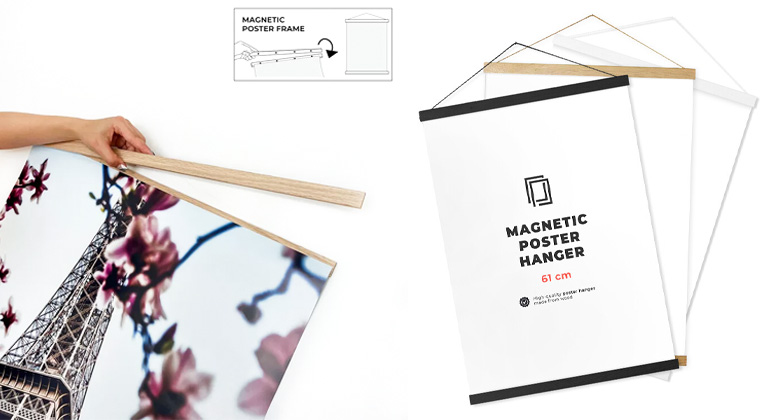 Hledáte originální a stylový způsob připevnění vašeho plakátu? Naše magnetické a plastové lišty jsou ideálním řešením. Magnetické dřevěné lišty nabízí elegantní způsob zavěšení bez použití šroubků nebo spon. Plakát pevně drží malé magnety umístěné v horní a spodní liště. Pro snadné zavěšení slouží provázek připevněný k horní liště. Balení obsahuje 4 dřevěné lišty (2 horní a 2 spodní) pro perfektní fixaci plakátu. Alternativně můžete využít plastové lišty, které jednoduše nasadíte na plakát shora i zdola, čímž zajistíte jeho napnutí a zabráníte zvlnění. Plastové lišty jsou cenově dostupné, snadné na instalaci a vhodné do jakéhokoliv interiéru. V nabídce máme různé barvy a velikosti lišt, takže si snadno vyberete tu, která bude ladit s vaším plakátem i prostorem.