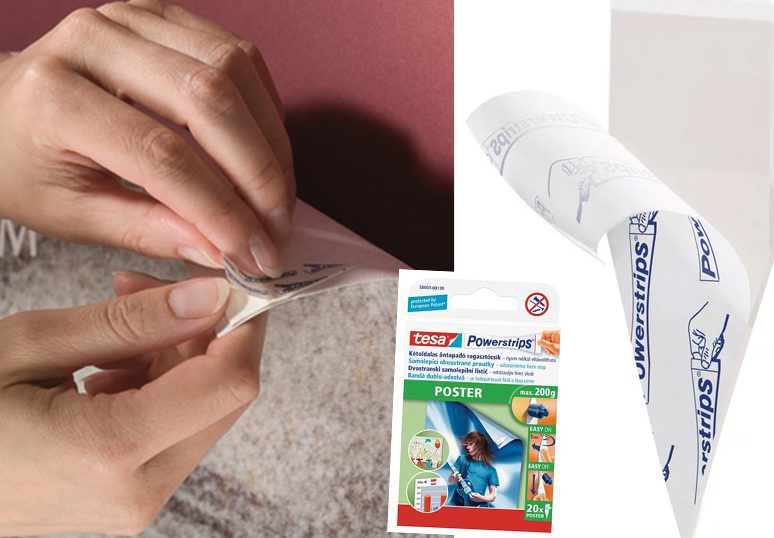 Abych nezničil zeď, nejlevnější a zároveň nejšetrnější metodou připevnění plakátu je za použití oboustranných proužků. Proužky, které prodáváme, jsou pevné a přitom snadno odstranitelné a na rozdíl od jiných proužků po odstranění nezanechávají na zdi ani na jiné ploše žádné nevzhledné stopy. Obraz bez vrtání či hřebíků tak můžete lehce a jednoduše přilepit na zeď, dveře, skříň či kamkoli jinam. Rovněž garantují maximální nosnost 1 kg při nalepení na hladký povrch. Stačí tedy odtrhnout část proužku a nalepit ho zezadu na plakát tam, kde chcete, aby byl připevněn. Nezapomeňte pak na proužek dostatečně zatlačit, aby byl plakát pevně připevněn.