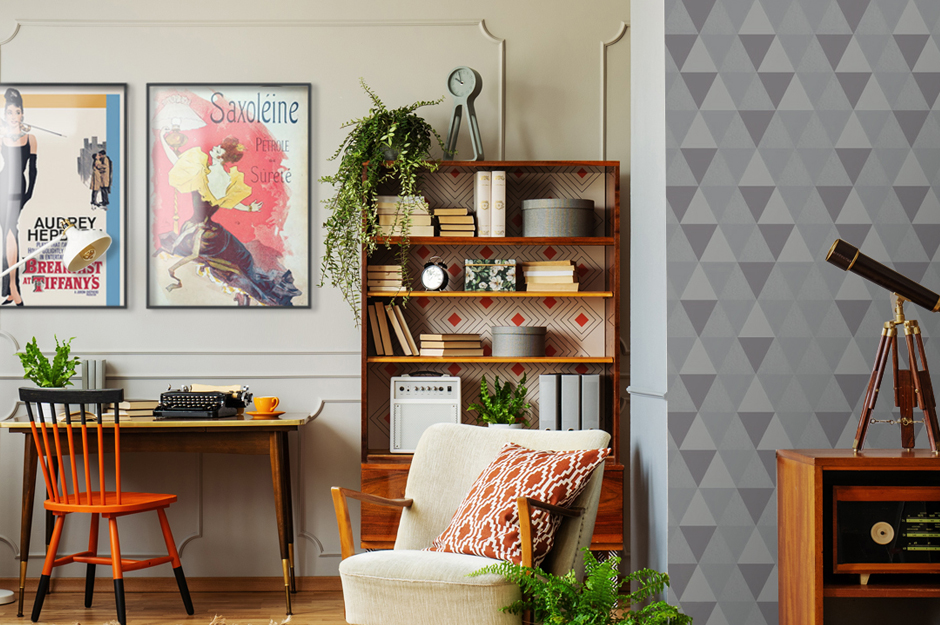 V šedesátých letech lidstvo poprvé dosáhlo na povrch Měsíce, není tedy divu, že v té době vzniklo spoustu sci-fi filmů a kosmický vzhled doplňků byl velmi kurzu. To, co my dnes považujeme za retro byla ovšem pro naše babičky budoucnost! V interiéru byly oblíbené plasty, vinyl, chrom a umakart. Jako první si tedy pořiďte plastové židle zářivých barev do jídelny! Kromě metalického vzhledu jsou pro retro typické hlavně barvy. Po hrůzách války se lidé zkrátka potřebovali rozveselit! Mezi nejtypičtější barvy patří oranžová, žlutá, červená, trávově zelená, fialová. Barvy se ovšem musí dobře zkombinovat. Chcete-li svůj interiér oživit retro barvami, mezi vhodné kombinace patří hlavně oranžová, modrá a olivově zelená, světle a tmavě šedá s hořčicově žlutou či citrónově žlutá, jahodově červená, trávová zelená a černošedá. Velmi oblíbené byly tapety s geometrickými vzory. (Pro inspiraci koukněte do naší Retro kolekce!)