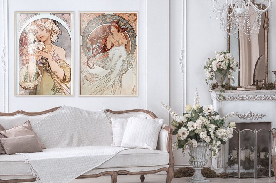 Jedním z nejkrásnějších stylů, ve kterých se kdy malovalo je jednoznačně secese. Secese se inspirovala hlavně přírodními motivy i krásou žen. V té době se také poprvé začalo produkovat i užité umění – nábytek, ozdoby,vázy, ale třeba i reklamní předměty. Jedním z největších symbolů secese je český malíř Alfons Mucha, který tvořil v Paříži. Mezi jeho nejznámější reklamní díla patří překrásné plakáty pro představení herečky Sarah Bernhardové. Když už ale zmiňujeme nejpopulárnější malíře z období secese, jedničkou bude asi navždy rakouský malíř Gustav Klimt. Jeho nádherným zlatem zdobeným ženským portrétům odolá málokdo! Tito dva malíři navíc vypadají skvěle i v moderních interiérech, proto pokud nemáte čas, chuť a ani peníze na velké změny v interiéru, tyto dva malíře vám rozhodně doporučujeme!