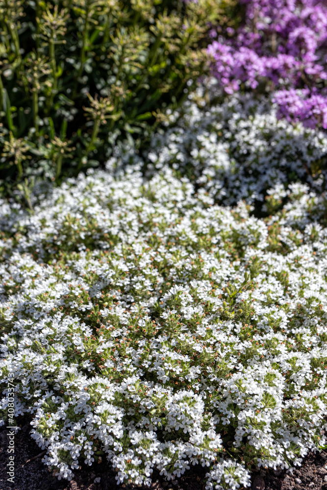 Obraz na plátně Bloming cultivar thyme (Thymus sp.) in the summer rockery