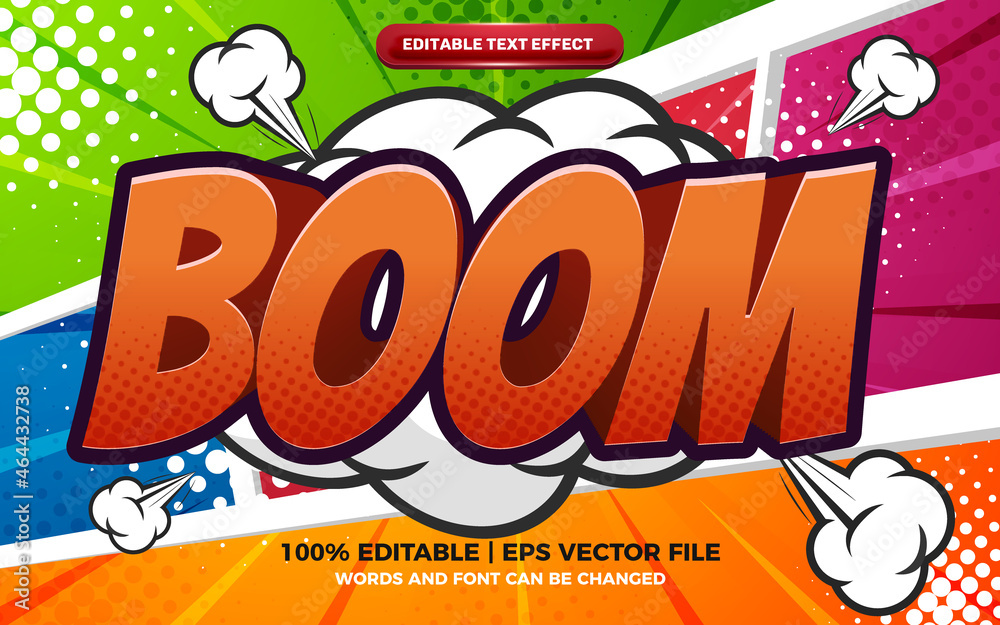 Fotografie boom comic cartoon editable text effect on colorfull halftone comic background