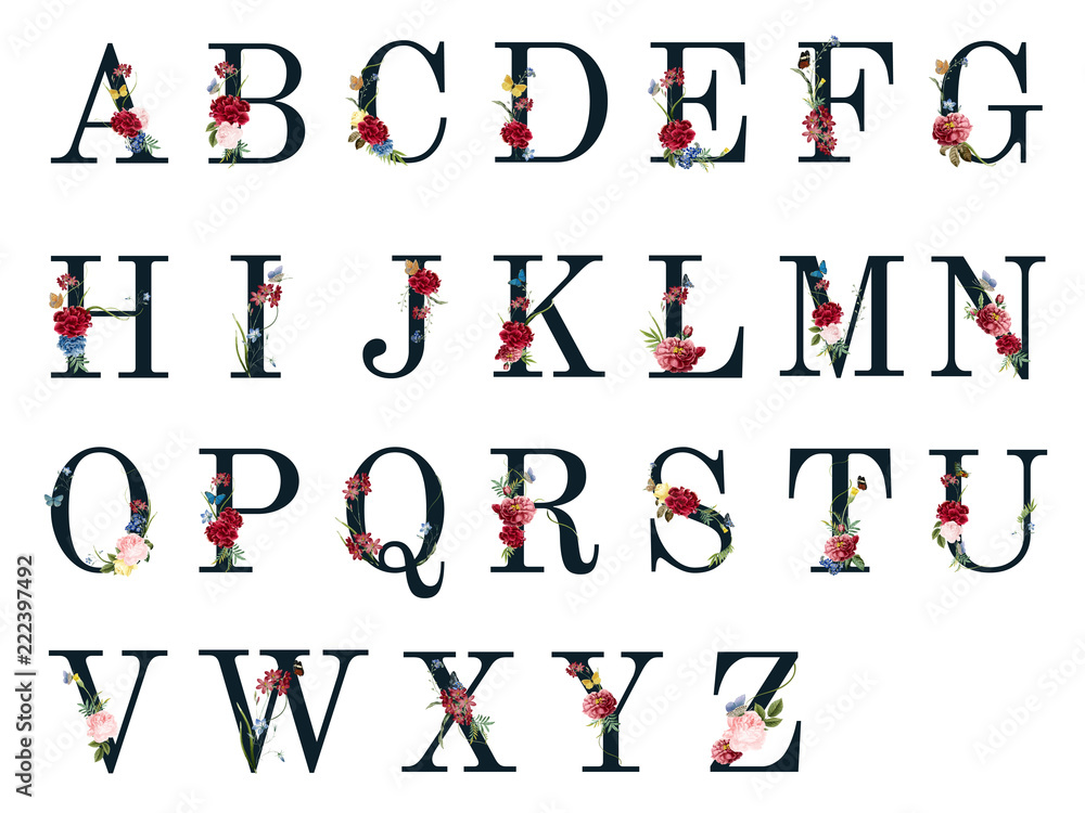 Fotografie Botanical alphabet with tropical flowers illustration
