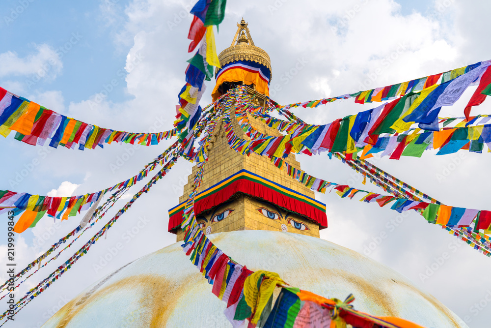Fotografie Boudhanath Stupa and prayer flags in Kathmandu