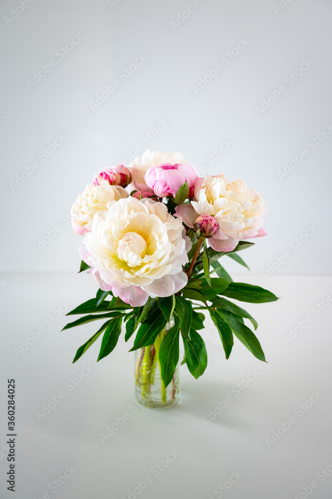 Fotografie bouquet of peonies, white and pink, wedding, romantic, love, happiness