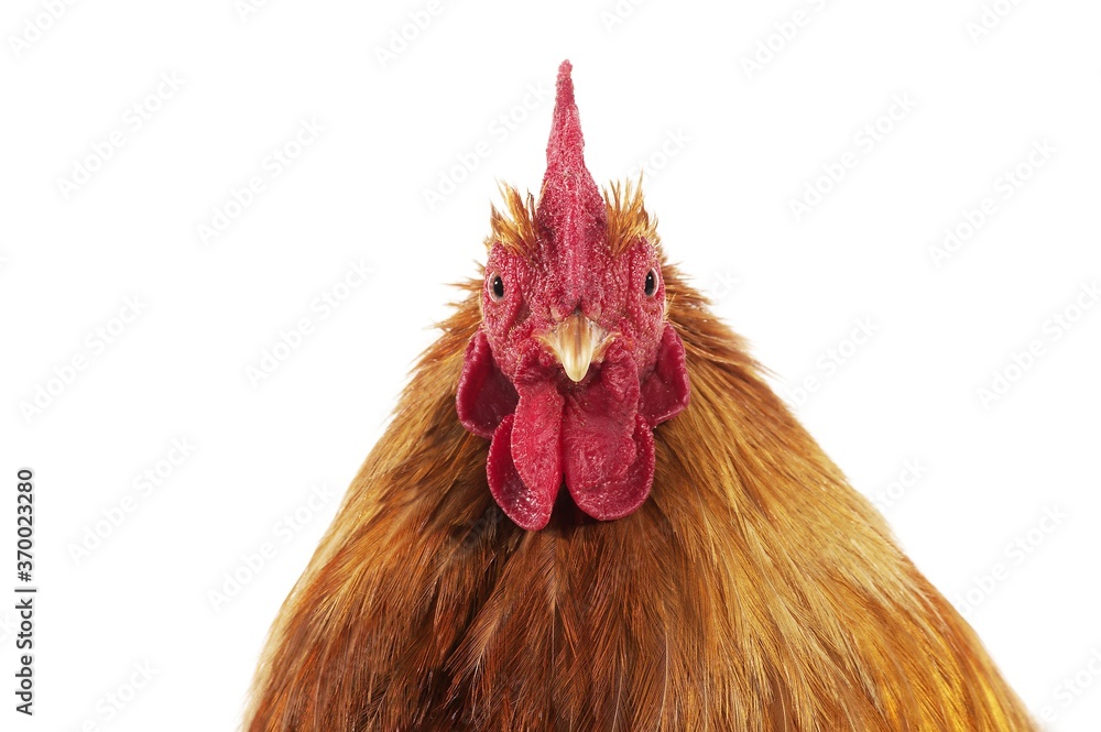 Fotografie Brahma Perdrix Chicken, an Breed from India, Cockerel against White Background