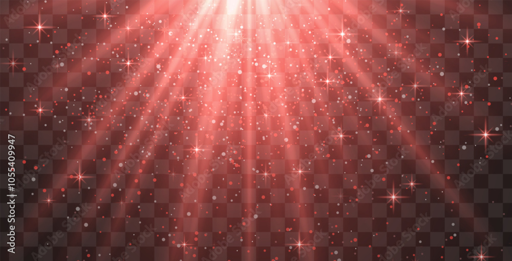 Fotografie Bright red radiant light burst with sparkles and glittering particles on a transparent background, creating a festive effect