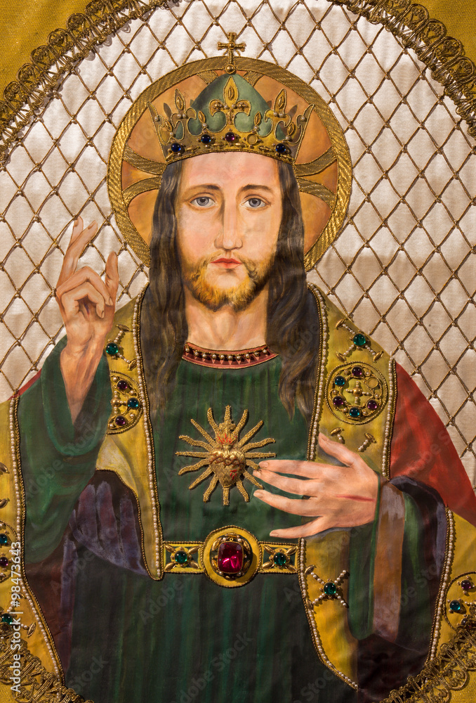 Fotografie Brussels - Needelwork of Jesus Christ heart on the old catholic vestment