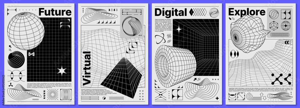 Fotografie Brutalism y2k posters, with retro grid and 3d abstract shapes