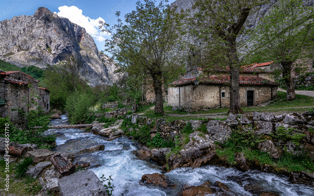 Obraz na plátně Bulnes, Cabrales, Asturias, Picos de Europa, Rio Tejo, Canal del Texu