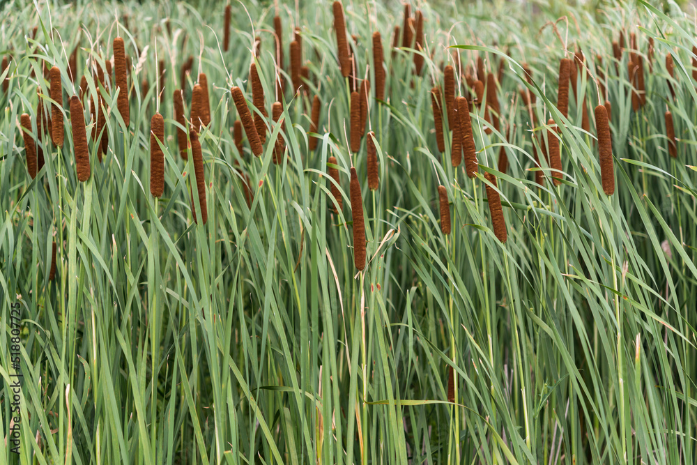 Obraz na plátně bulrush or cattails in summer
