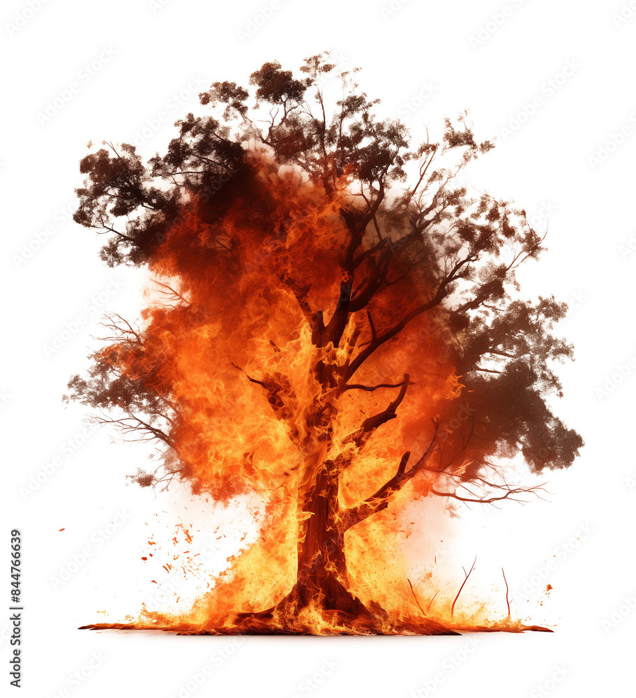 Fotografie Burning Tree Isolated on Transparent Background