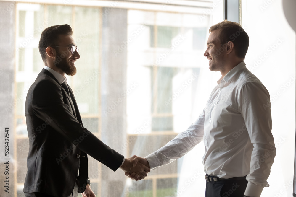 Fotografie Business partner diverse businessmen greet each other shaking hands